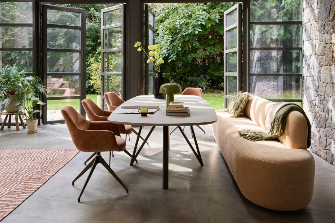 De productgroep eetbanken kenmerkt in veel de eigenschappen van een Dyyk-meubel: daar waar nut en design elkaar vinden. Model Supermoon biedt het comfort waar je naar op zoek bent bij de eettafel. De nette rondingen geven de eetbank de souplesse en sfeer mee. De bank heeft een stevige basis, die door de strakke stoffering nog eens wordt bevestigd. De zachte rondingen nodigen uit tot lang natafelen. Supermoon levert net dat beetje meer in de eetkamer, net dat stukje Dyyk.